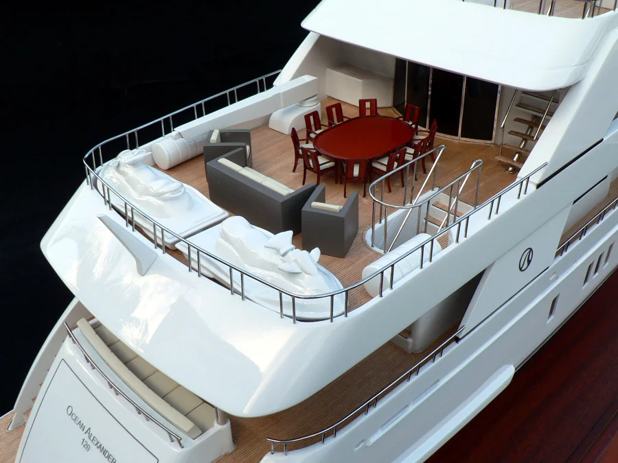 Motor Yacht Ocean Alexander 120’ will be the first yacht to be created by the three companies in sizes of 36, 40, and 45 meters to MCA classification. The yacht is currently in the final stages of engineering and the construction will begin early next year to keep up with the delivery date in late 2011.